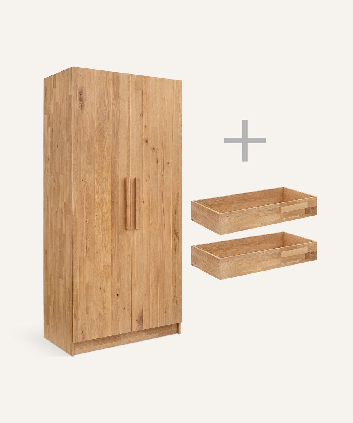Mit seiner hochwertigen Verarbeitung aus FSC®-zertifizierter Eiche (geölt) bringt der Schrank Stabilität und Wärme ins Kinderzimmer. Die edle, natürliche Holzoptik wirkt elegant und fügt sich harmonisch in jedes Wohnkonzept ein. Ein Möbelstück, das über viele Jahre hinweg anpassbar und alltagstauglich bleibt.