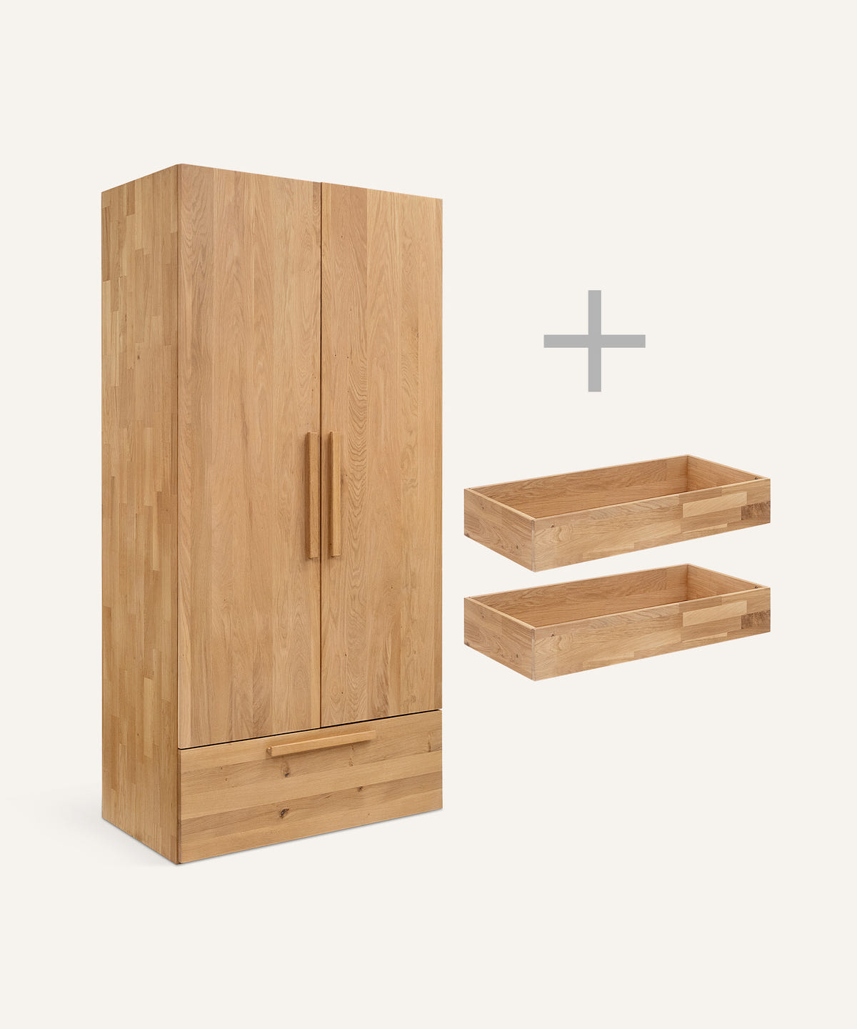 Mit seiner hochwertigen Verarbeitung aus FSC®-zertifizierter Eiche (geölt) bringt der Schrank Stabilität und Wärme ins Kinderzimmer. Die edle, natürliche Holzoptik wirkt elegant und fügt sich harmonisch in jedes Wohnkonzept ein. Ein Möbelstück, das über viele Jahre hinweg anpassbar und alltagstauglich bleibt.