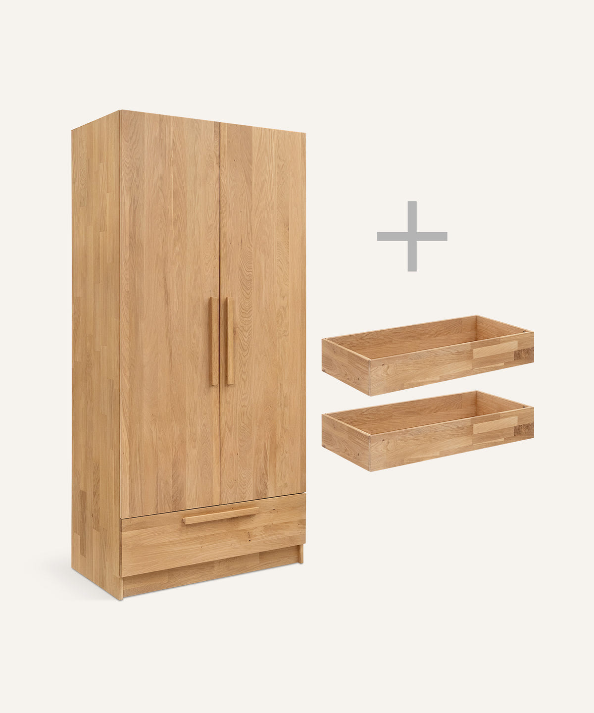 Mit seiner hochwertigen Verarbeitung aus FSC®-zertifizierter Eiche (geölt) bringt der Schrank Stabilität und Wärme ins Kinderzimmer. Die edle, natürliche Holzoptik wirkt elegant und fügt sich harmonisch in jedes Wohnkonzept ein. Ein Möbelstück, das über viele Jahre hinweg anpassbar und alltagstauglich bleibt.