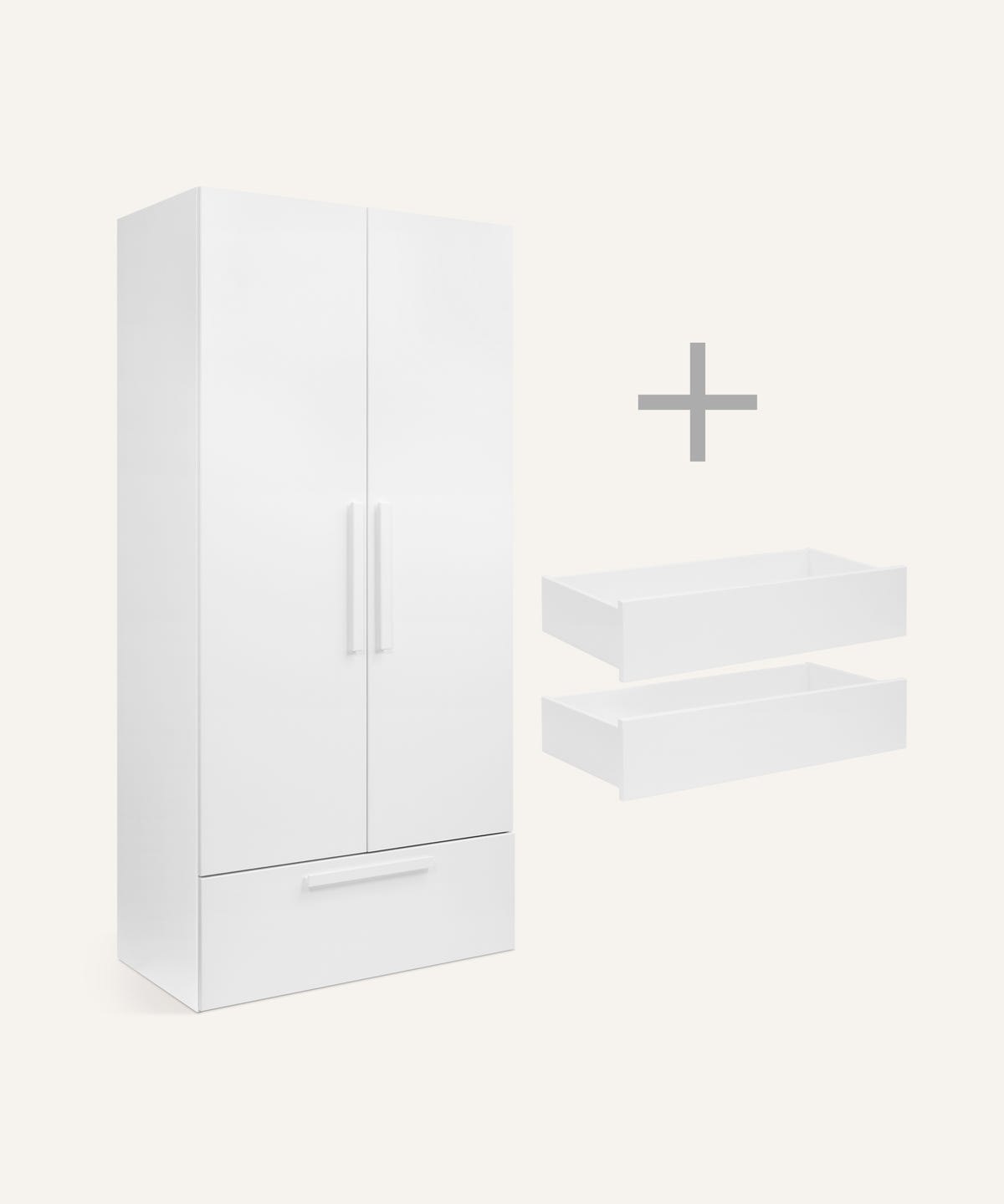 Der Schrank besteht aus FSC®-zertifizierter Kiefer, die mit einem weißen Lack versehen ist. Die glatte Oberfläche wirkt ruhig und freundlich und bringt helle Leichtigkeit ins Kinderzimmer. Durch sein relativ geringes Gewicht bleibt der Schrank flexibel und begleitet Familien über viele Jahre hinweg – langlebig, nachhaltig und beständig.
