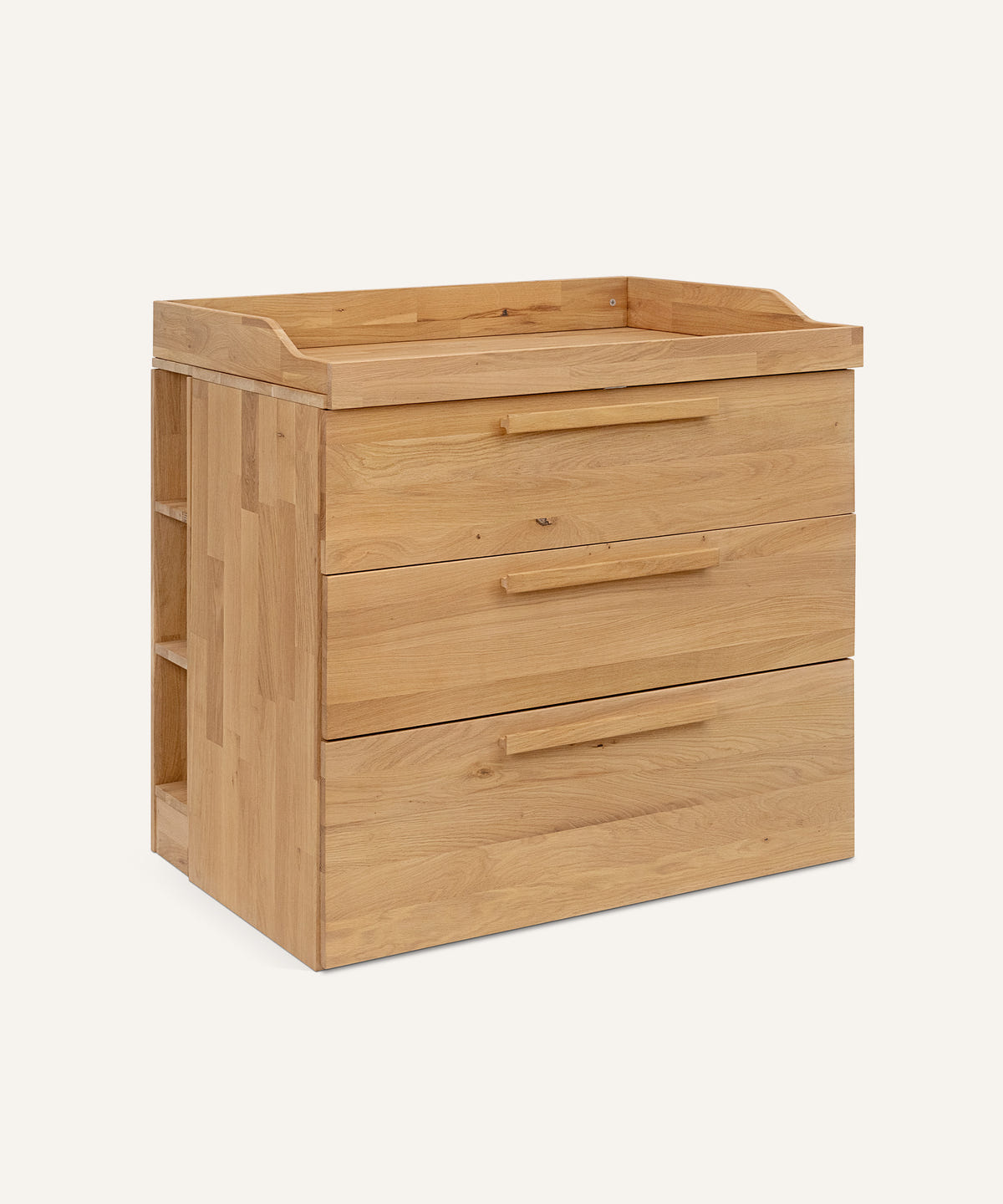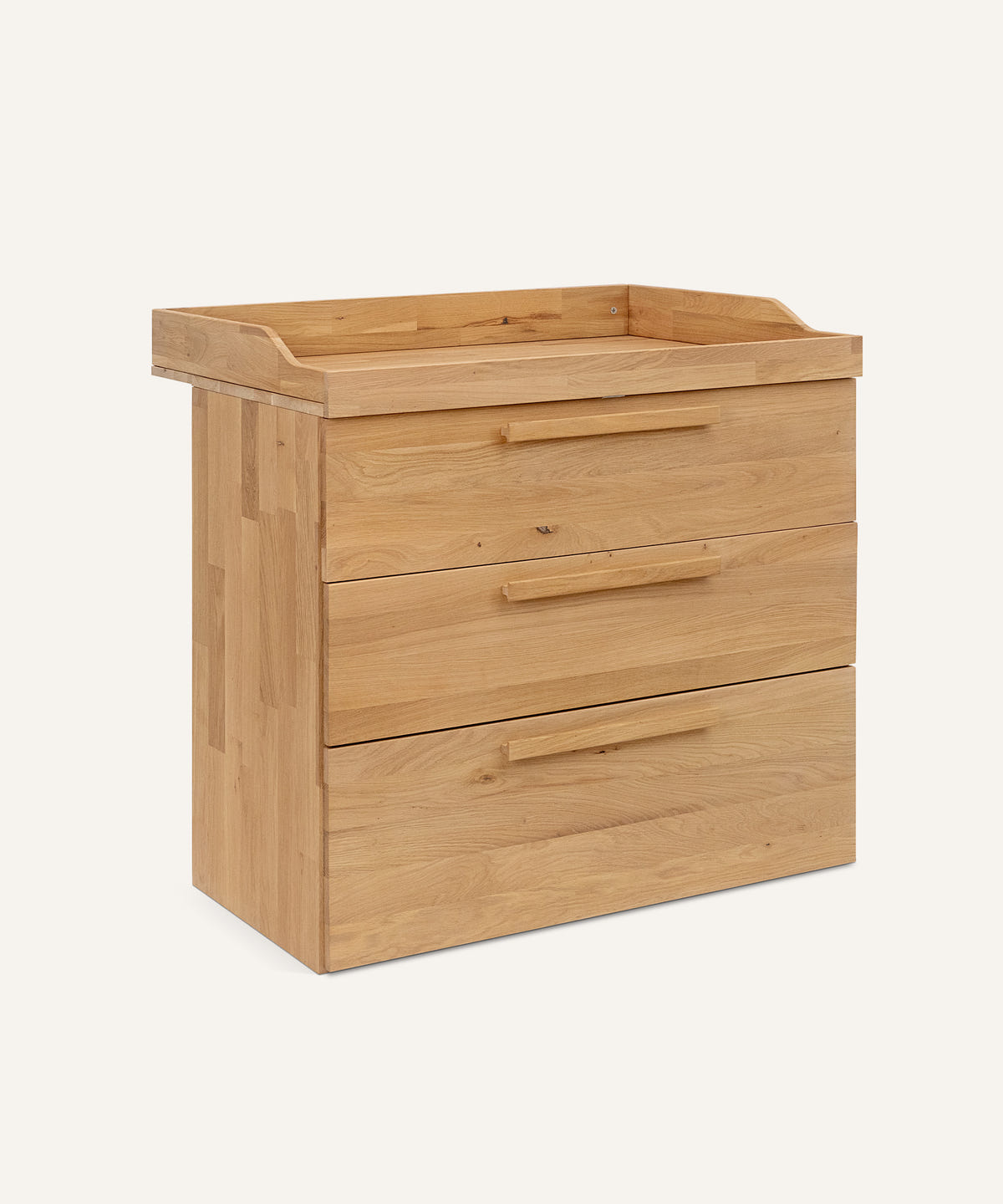 Die Wickelkommode Linia mit Rollschublade ist die ideale Lösung für Familien, die Funktionalität, Nachhaltigkeit und Design vereinen möchten. Ihr 2in1-Konzept macht sie zum optimalen Begleiter über viele Jahre: Nach der Wickelzeit lässt sich der Aufsatz einfach abnehmen – und Linia wird zur stilvollen Design-Kommode, die in jedem Raum Platz findet.