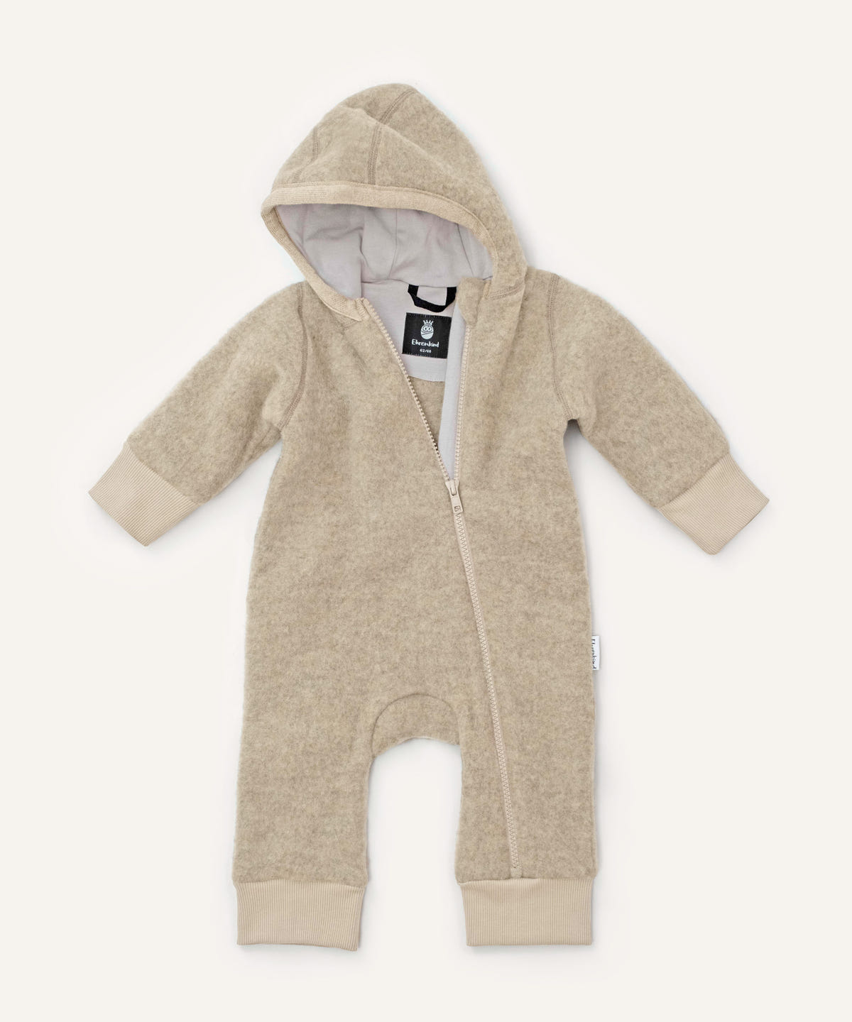 Der weiche Wollfleece-Overall bietet eine angenehme Wärmeisolierung und ein rundum kuscheliges Tragegefühl – ideal für die empfindliche Babyhaut. Im Vergleich zu Walk ist Wollfleece anschmiegsamer und leichter, schützt aber ebenso zuverlässig vor Kälte. Als natürlicher Funktionsstoff ist er atmungsaktiv, temperaturausgleichend und feuchtigkeitsregulierend. So bleibt dein Kind angenehm warm, ohne zu überhitzen. Der asymmetrische Reißverschluss macht das An- und Ausziehen besonders leicht, während Kapuze und Bündchen für Komfort und wohlige Geborgenheit sorgen.